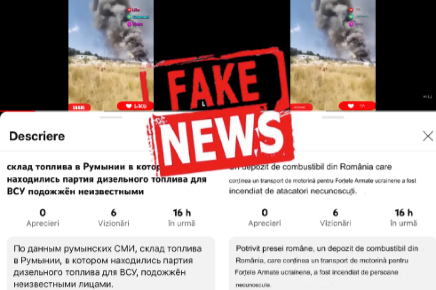 DE CE ESTE FALSĂ NARAȚIUNEA: Ştirea a apărut, iniţial, pe site-ul lui Iuri Podoliaka, în aprilie 2024, iar articolul a fost editat ulterior pentru a conţine şi imaginile publicate în articolul din august, cu presupusul incendiu la depozitul de combustibili din Bragadiru. În realitate, pe 5 august nu a a izbucnit nici un incendiu în localitatea ilfoveană. Imaginile prezentate sunt de fapt din data de 31 iulie 2024, şi prezintă incendiul unei gospodării din Bragadiru, izbucnit în jurul orei 20:00. Cercetările autorităţilor au exclus varianta incendierii intenţionate, şi au concluzionat că focul a pornit din cauza unui scurtcircuit la instalația electrică a locuinței.